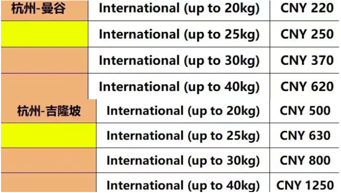记者找了另外一家卖家,询问国际航班行李托运价格,不同的国际航线托运价格都不一样。以亚洲航空为例,杭州直飞曼谷,行李20公斤以内托运价格为220元,25公斤以内托运价格为250元。如果是杭州飞吉隆坡,20公斤以内托运价格为500元,25公斤以内为630元。两条航线托运行李不限件数。