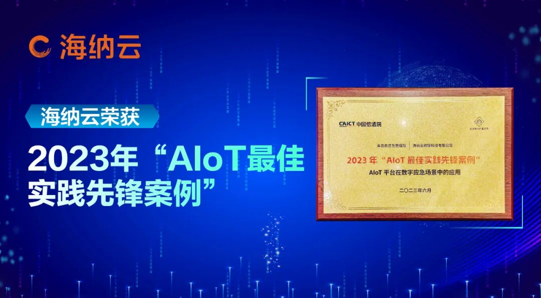 海纳云荣获“物联网平台通用能力检验证书”及2023年“AIoT最佳实践先锋案例”