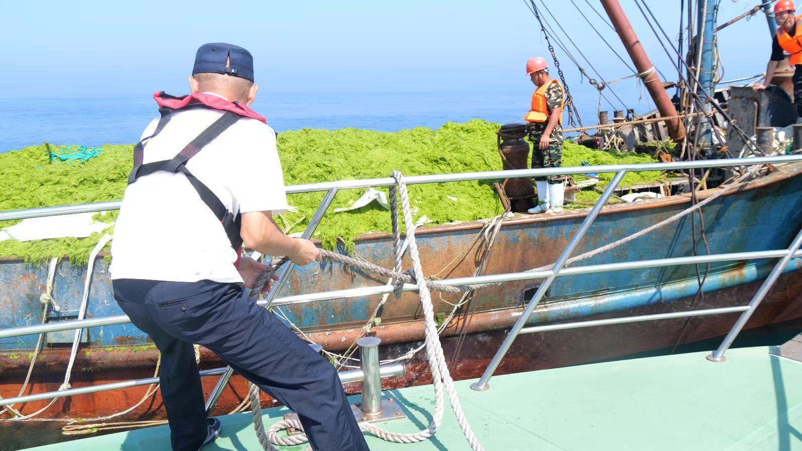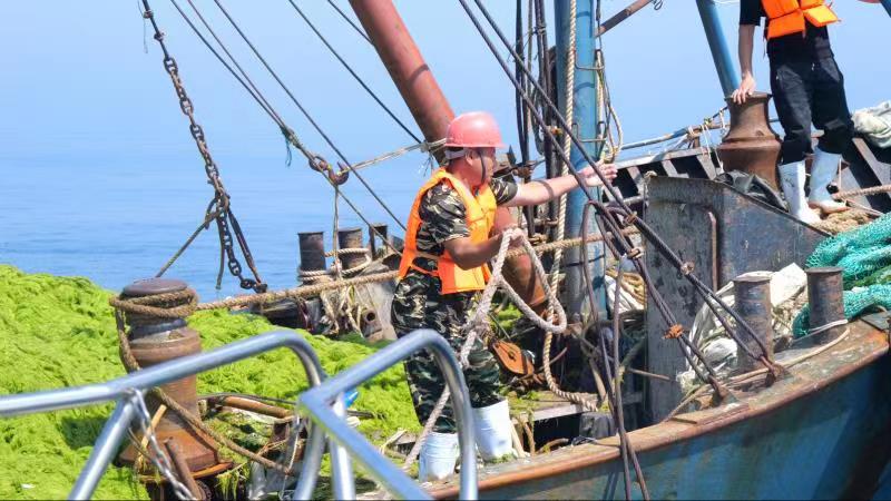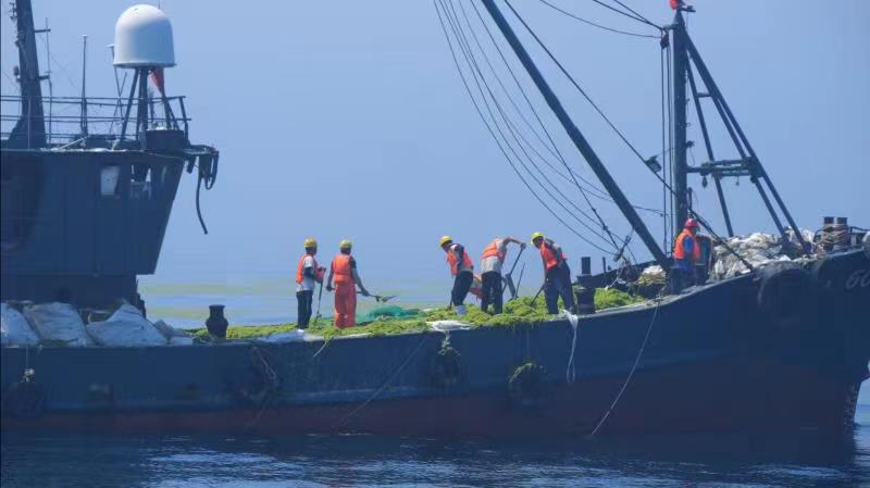在浒苔应对处置过程中,克服浒苔整体规模大、漂移路径不确定、海上极端天气多发等不利因素,在指挥部科学精准指挥下,海上、陆上浒苔处置各参加人员顶烈日、冒酷暑、战高温,争分夺秒、众志成城,持续奋战,取得了当前浒苔应对处置来之不易成果,近岸海域靠岸、上岸浒苔量大幅下降,岸上清理浒苔量与海上打捞量比为1:41,创历史同期最低水平。