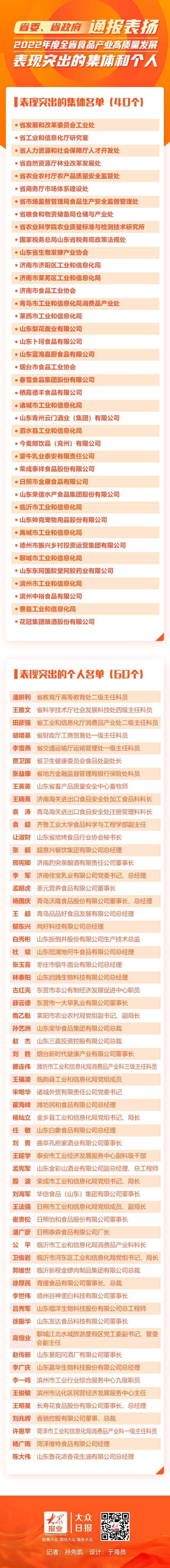 近日,省委、省政府印发《关于表扬2022年度全省食品产业高质量发展表现突出的集体和个人的通报》。《通报》指出: