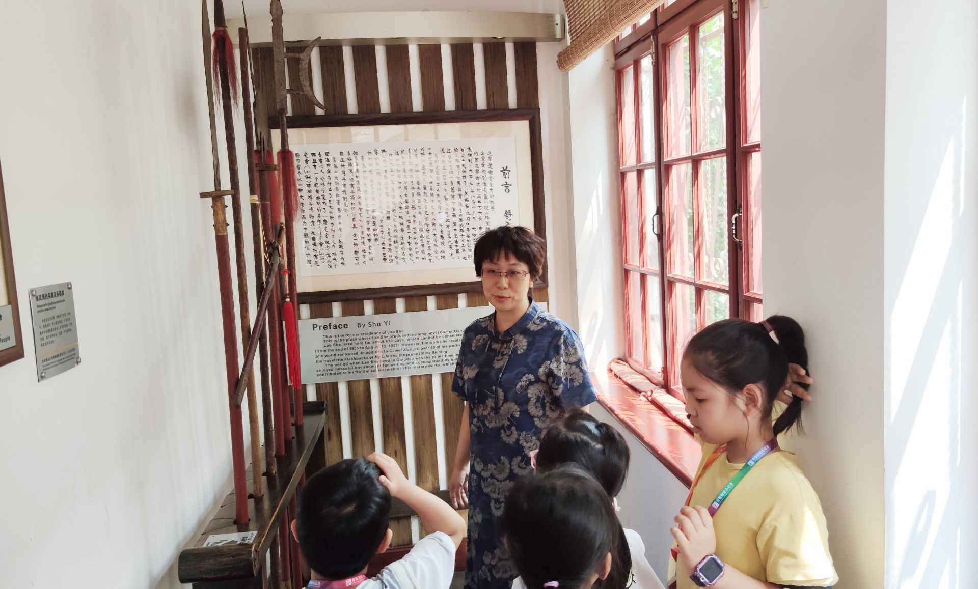 王馆长介绍老舍先生所使用的兵器