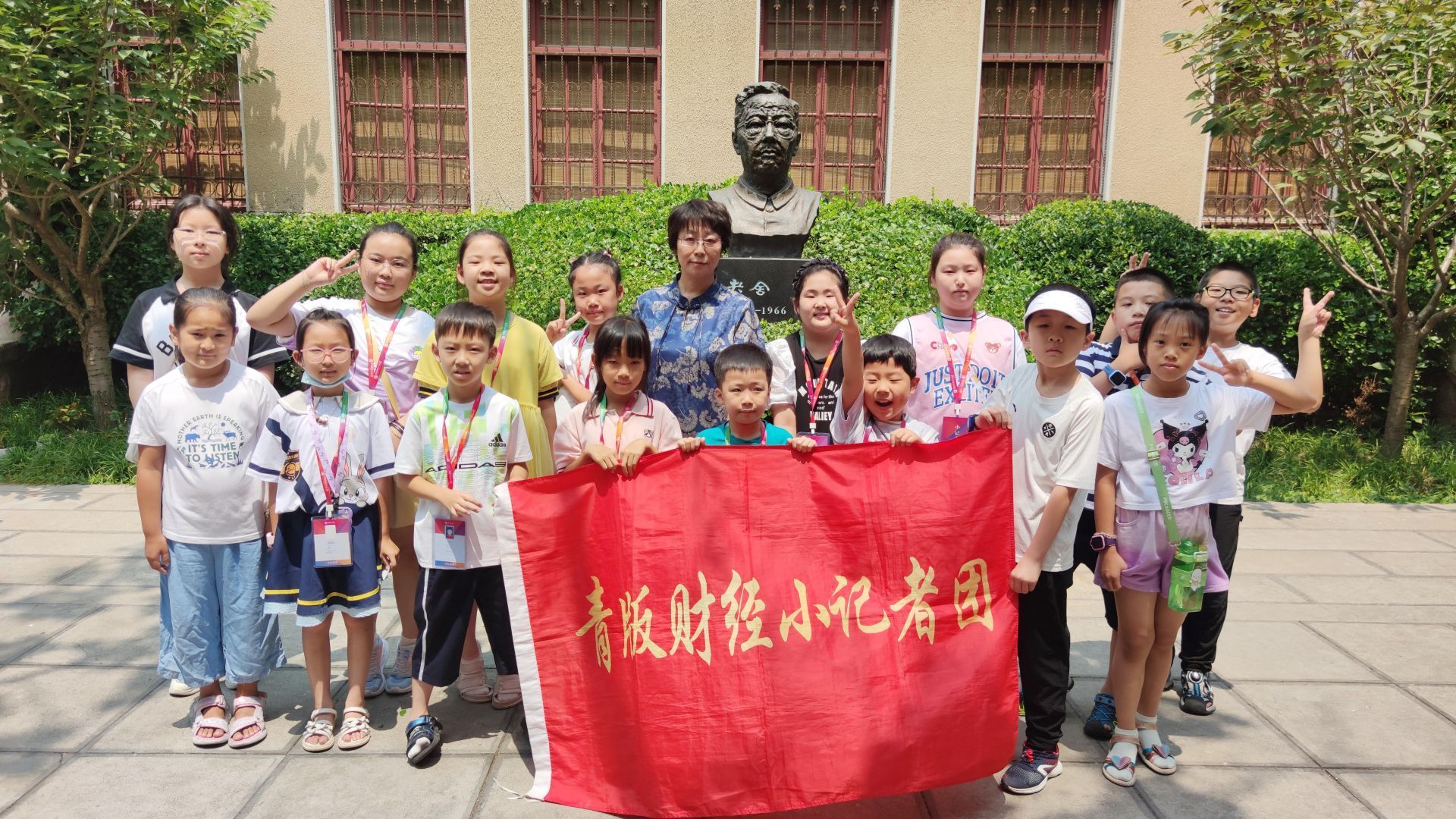 小记者们还参观了老舍先生经常光顾的“荒岛书店”,并采访了王馆长。最后小记者们在老舍先生头像雕塑前合影留念,表达对这位人民艺术家的敬重之情。