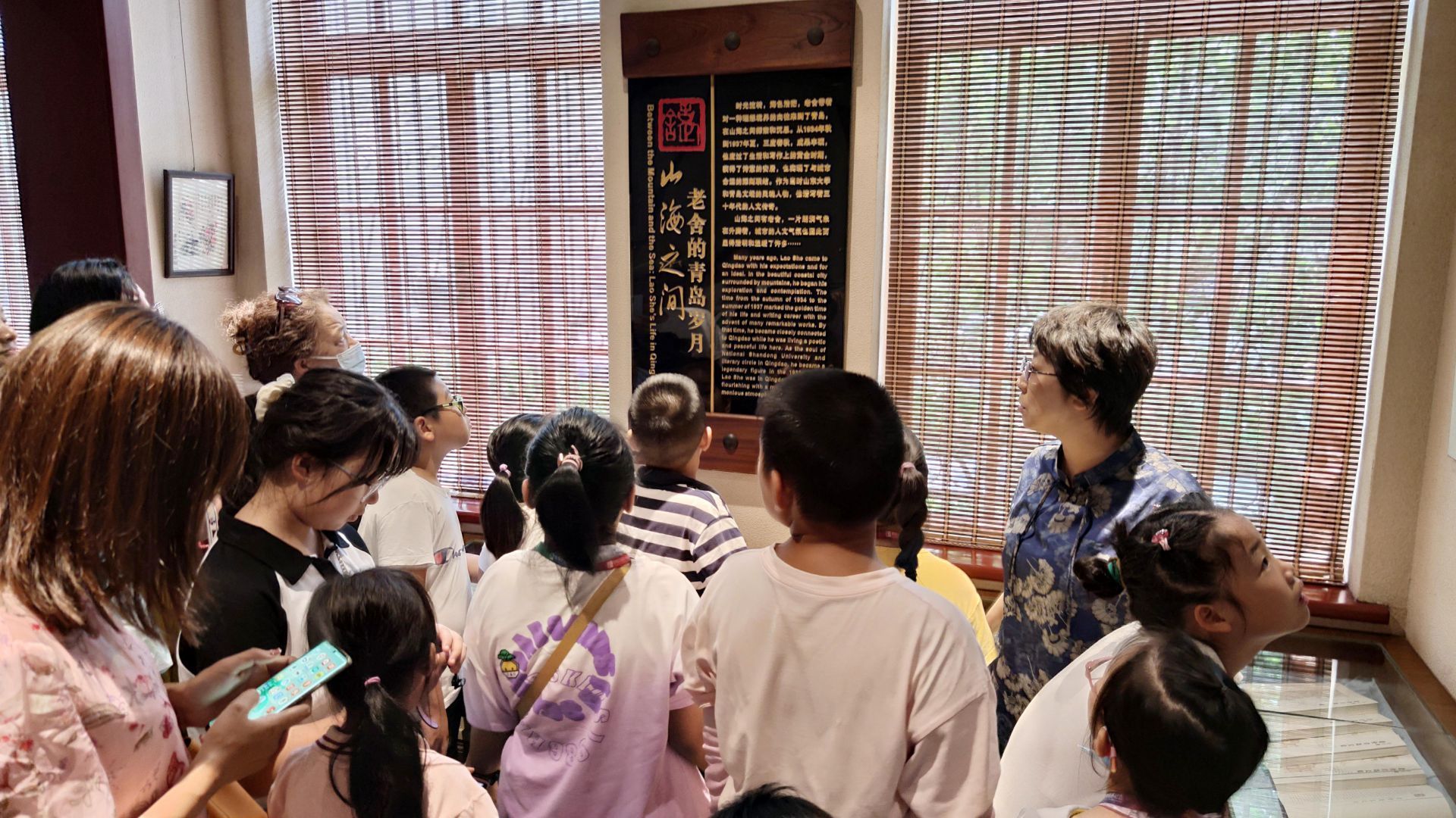 “1935年底至1937年8月,老舍先生一家人就居住在这,在此期间老舍先生创作了中国现代文学史上的长篇巨著《骆驼祥子》等一批优秀作品。”7月19日,在骆驼祥子博物馆,王咏馆长亲自为青版财经小记者讲解老舍的故事。