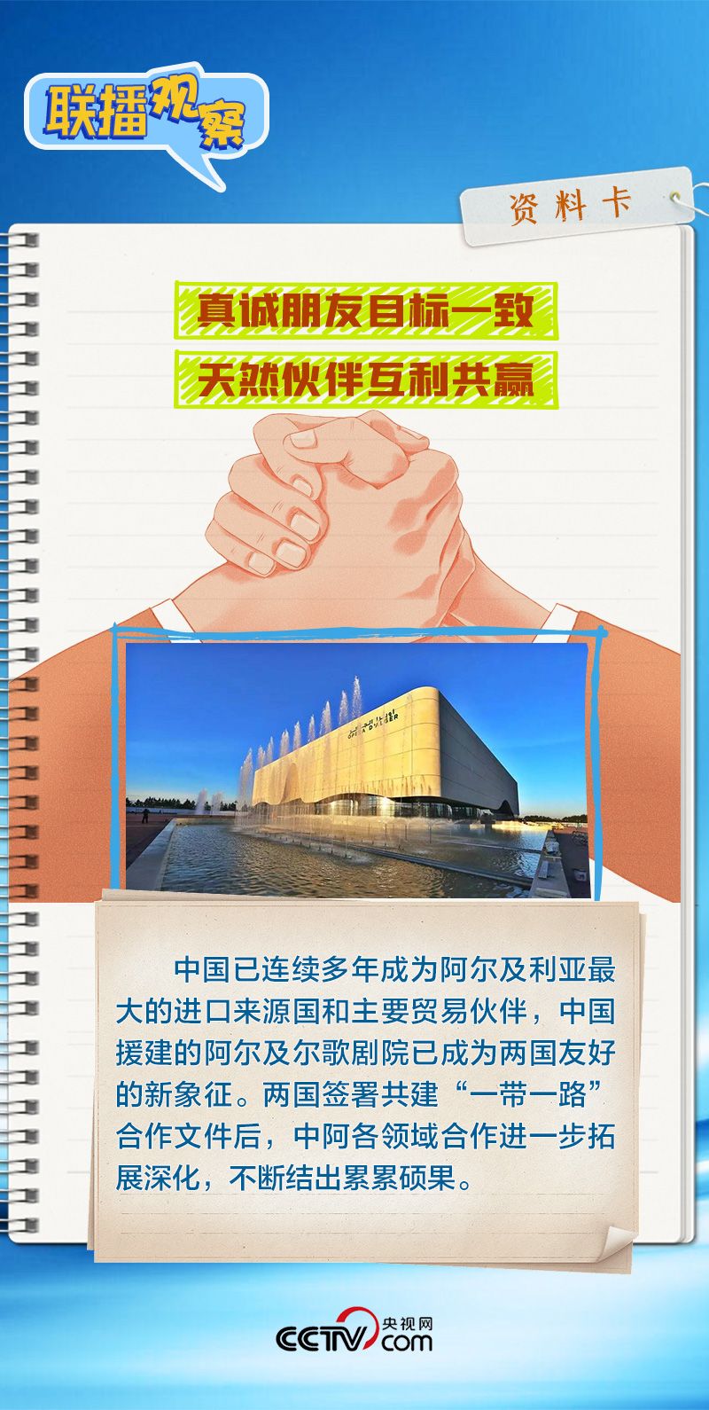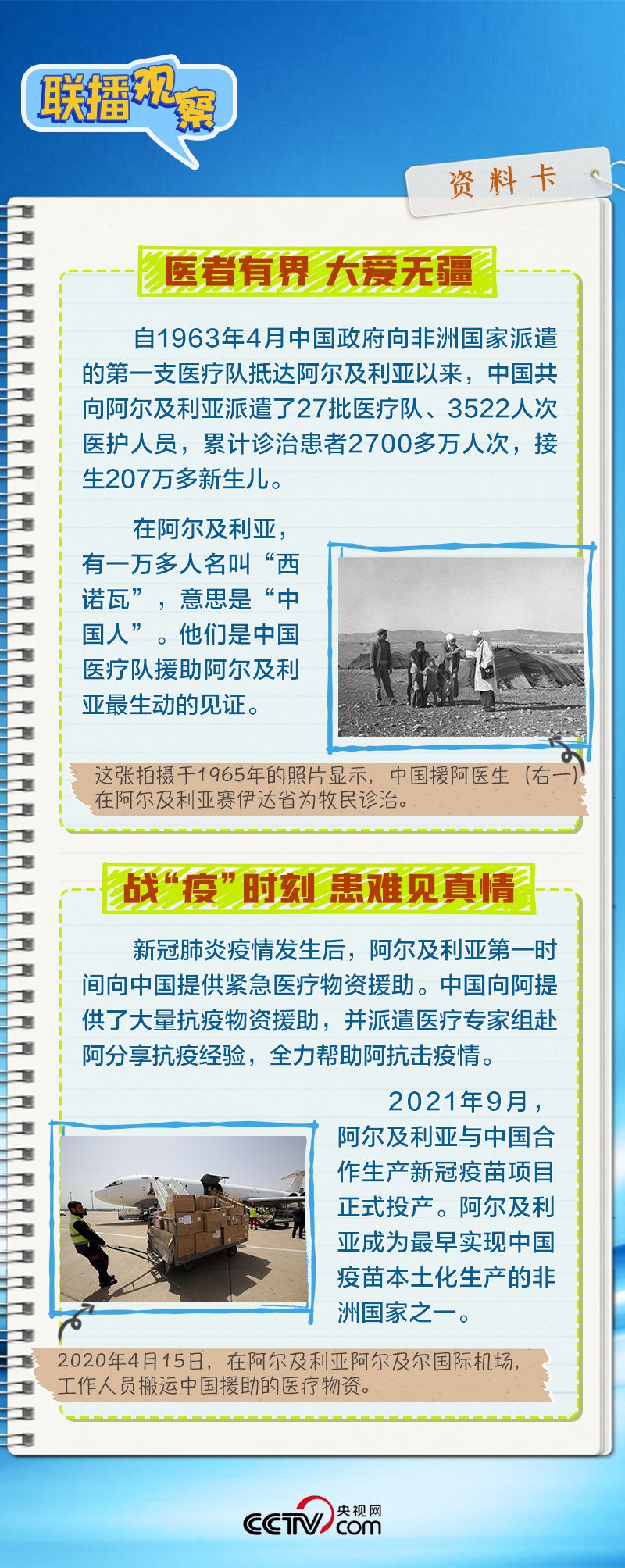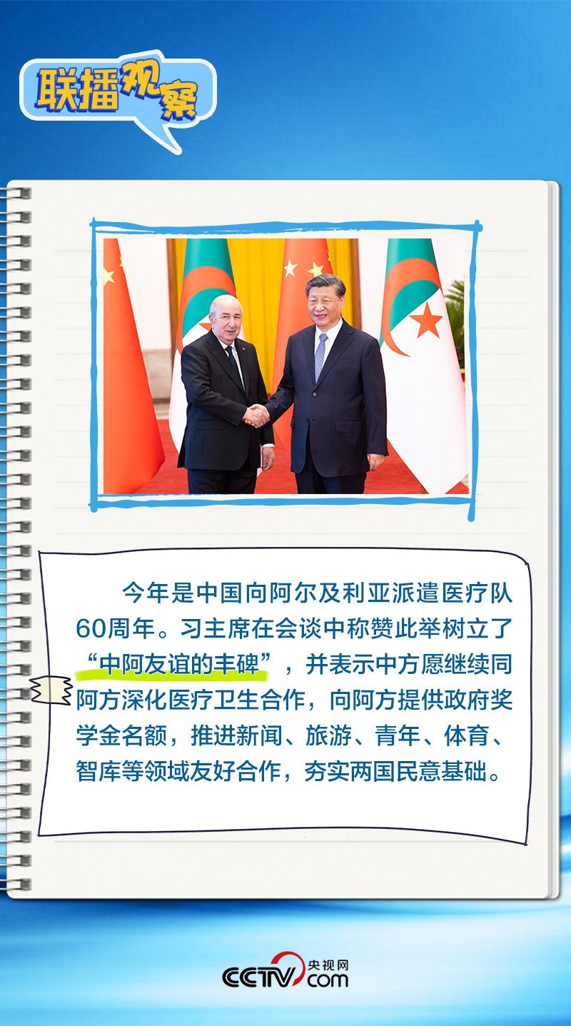 会谈中,习主席特别提到,今年是中国向阿尔及利亚派遣医疗队60周年,并称赞此举树立了“中阿友谊的丰碑”。中阿传统友谊深厚,两国始终相互尊重、平等相待、彼此支持,缔造了一段段友好交往的佳话。