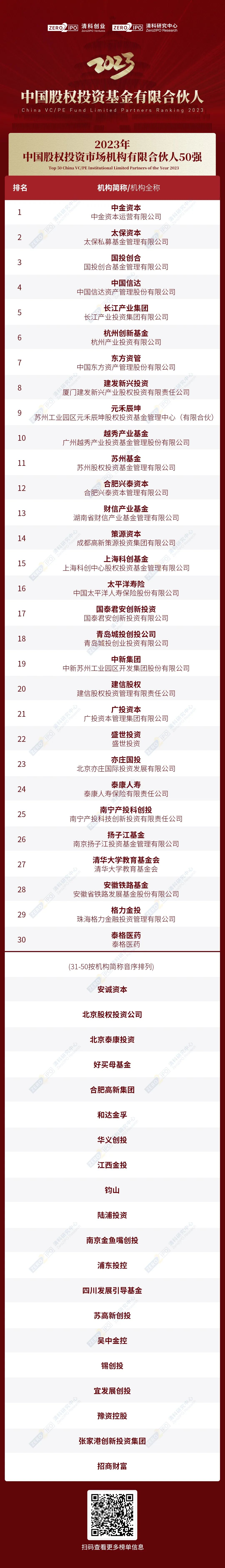 7月20日,第十七届中国基金合伙人峰会在深圳举办,会上正式揭晓了2023年中国股权投资基金有限合伙人榜单,青岛城投创投公司首次参与评选并荣膺“中国股权投资市场机构有限合伙人TOP50榜单”第18名。