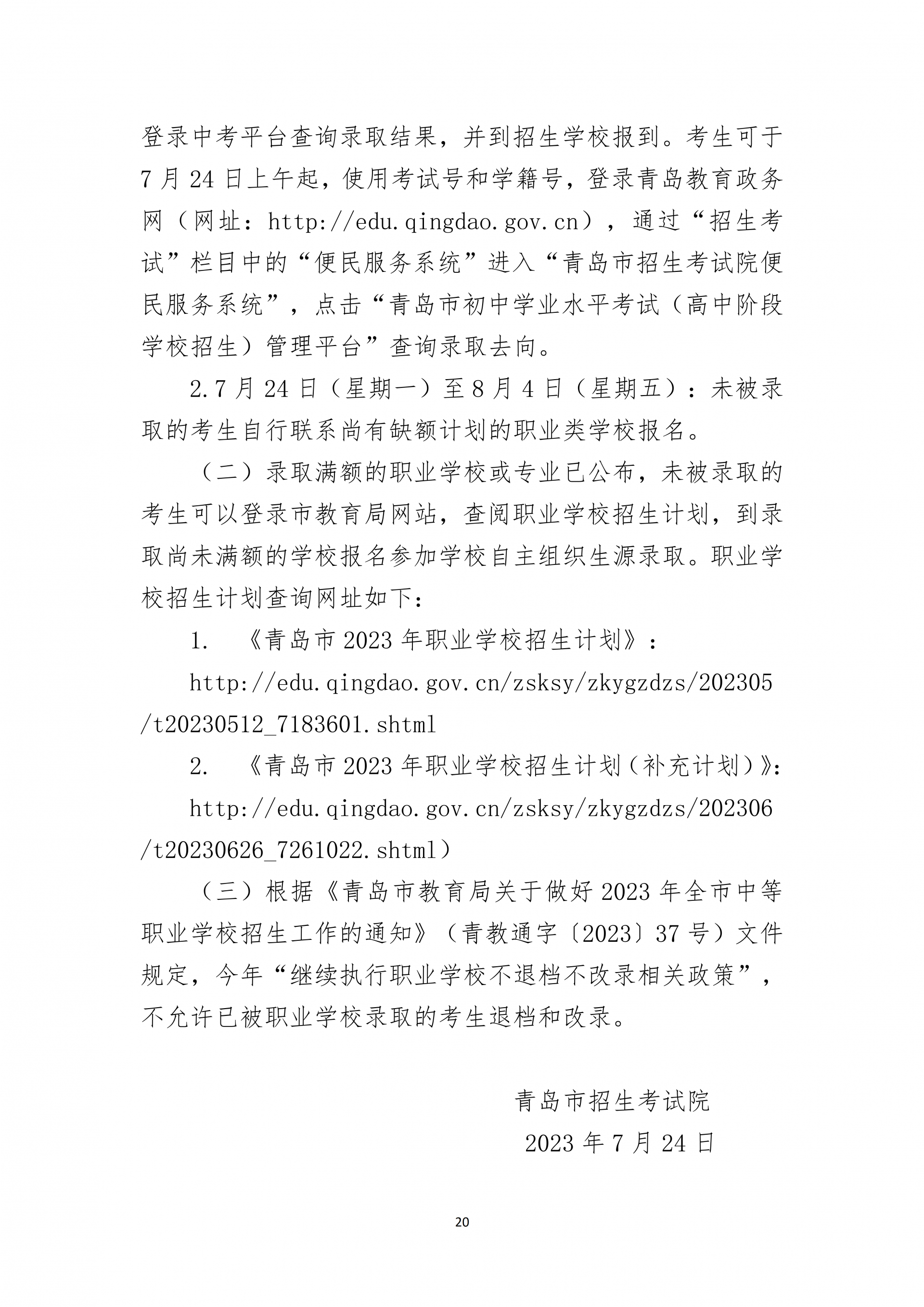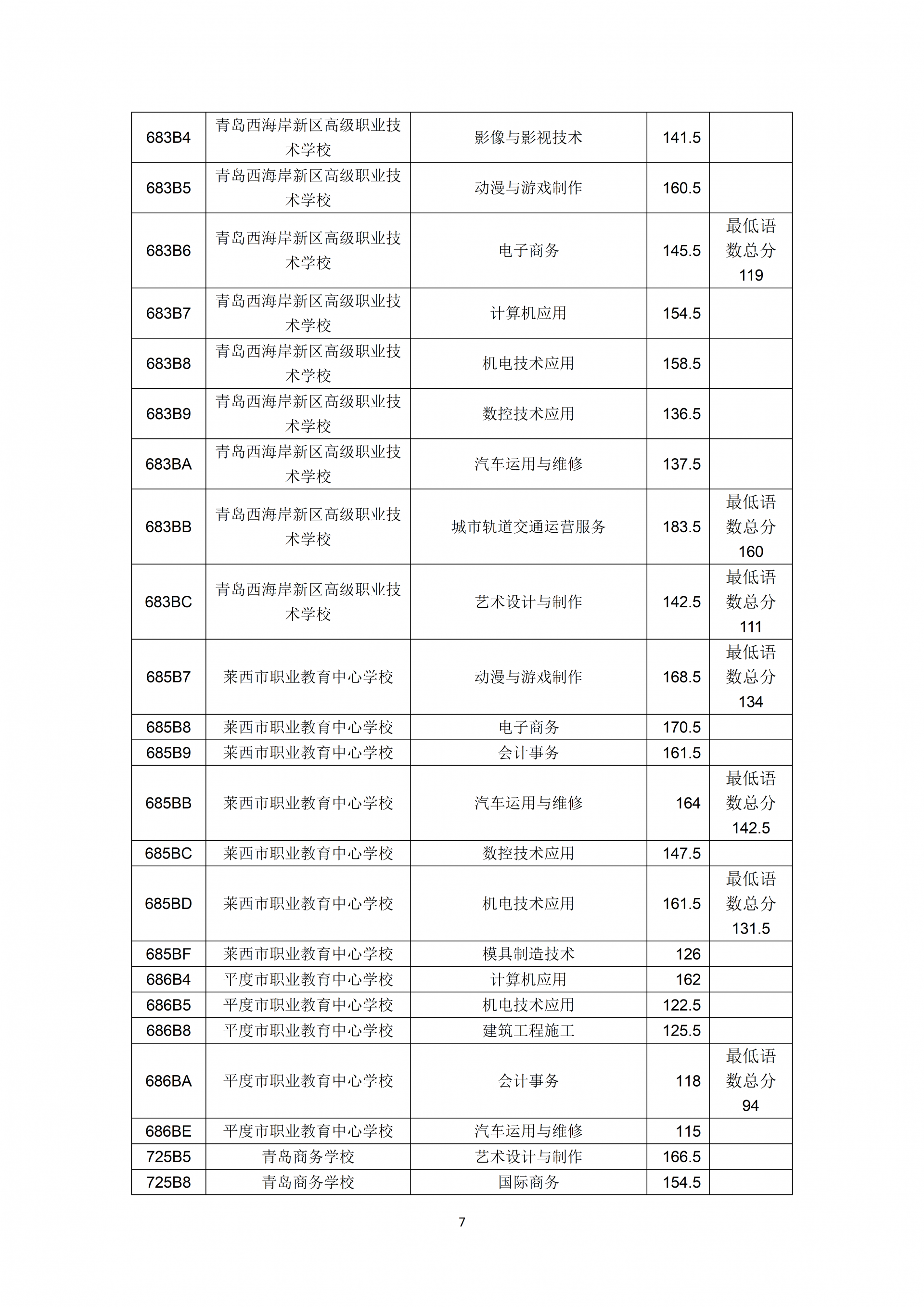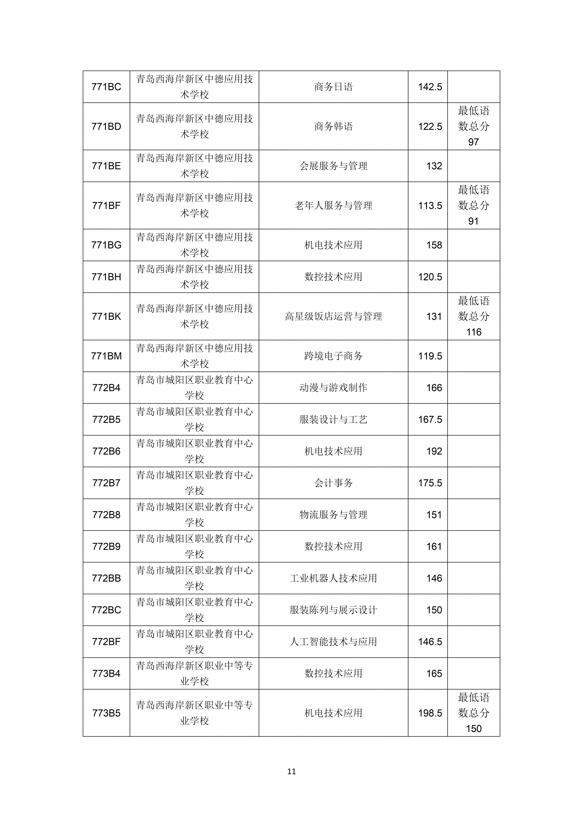 2023年青岛市职业类学校第一阶段招生录取分数线公布 2023-07-24 09:34 0 7月24日上午,2023年青岛市职业类学校第一阶段招生录取分数线公告发布。以下为全文: 来源:青岛市教育局 责任编辑:李颉