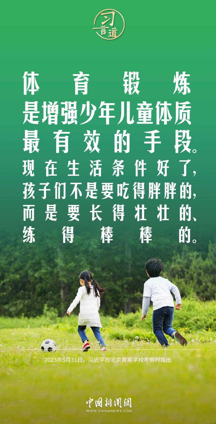 【青春主场】习言道|身体好了,才能为今后一生的学习工作打好基础 2023-07-26 21:30 0 党的十八大以来,习近平总书记高度重视青少年体育工作,强调要坚持健康第一的教育理念。 来源:中国新闻网 责任编辑:崔现香