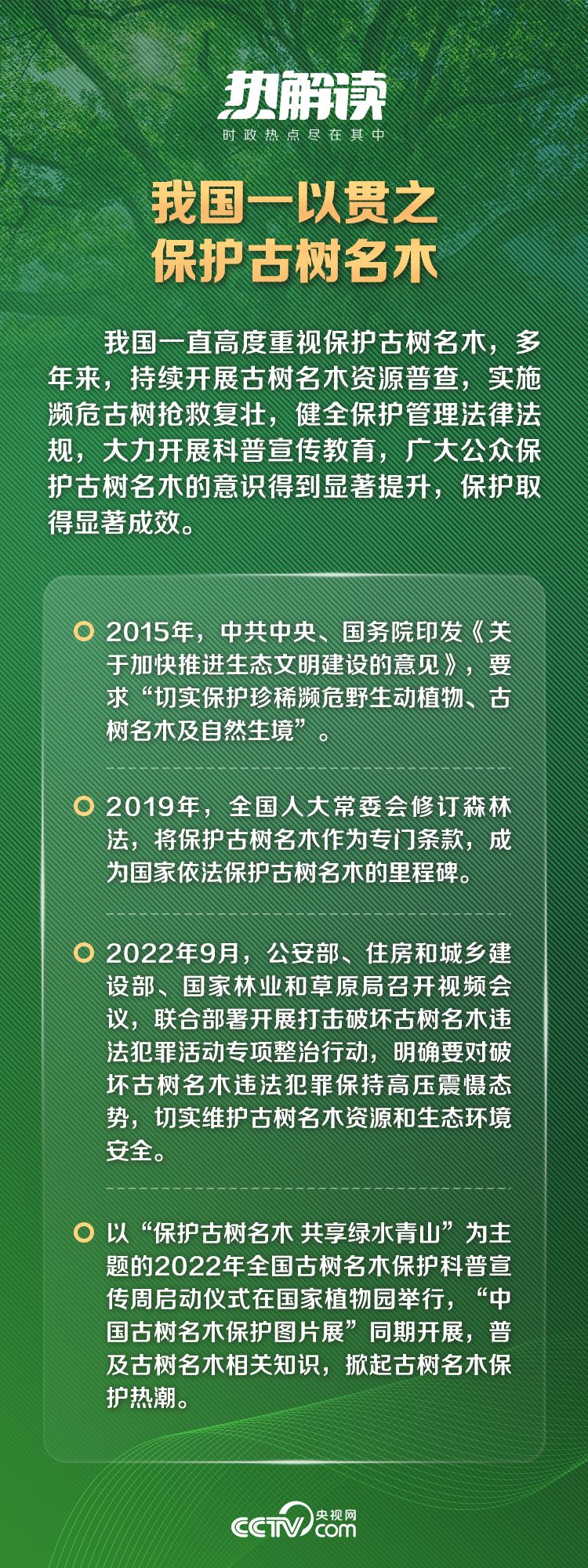 党的十八大以来,以习近平同志为核心的党中央高度重视古树名木保护工作。
