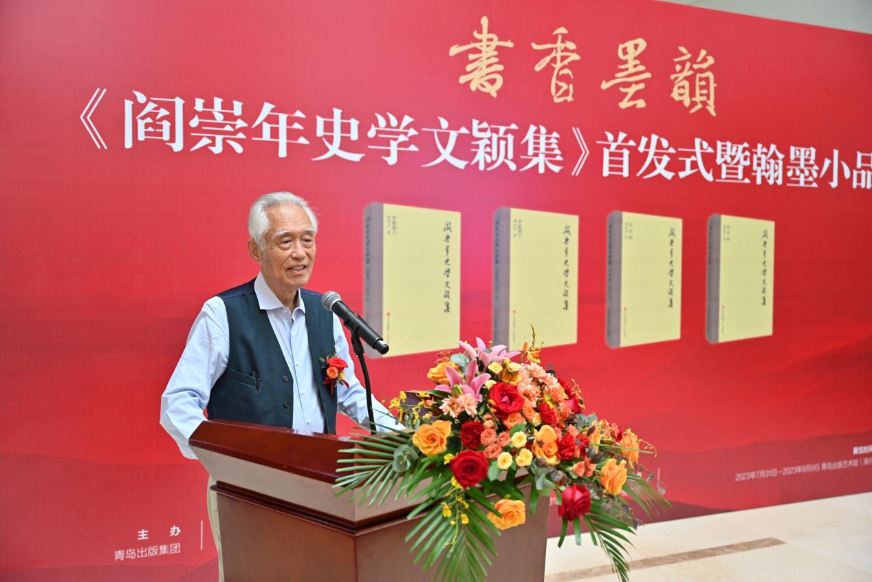 青岛出版集团党委书记、董事长贾庆鹏在致辞中表示,阎崇年先生研读经史,潜心治学,笔耕不辍。2020年,在故宫建成六百周年之际,阎先生的《大故宫六百年风云史》就由集团出版,取得了良好的社会反响。最新著作《阎崇年史学文颖集》再次交由集团出版,让我们倍感荣幸。这套文集分为四卷,钩沉史料、纵观横览,具有重要的文学价值和史料价值,称得上集大成之作。相信这部作品也将成为弘扬中华优秀传统文化的又一力作。