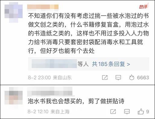 也有网友表示:“愿意买被洪水泡过的书”。