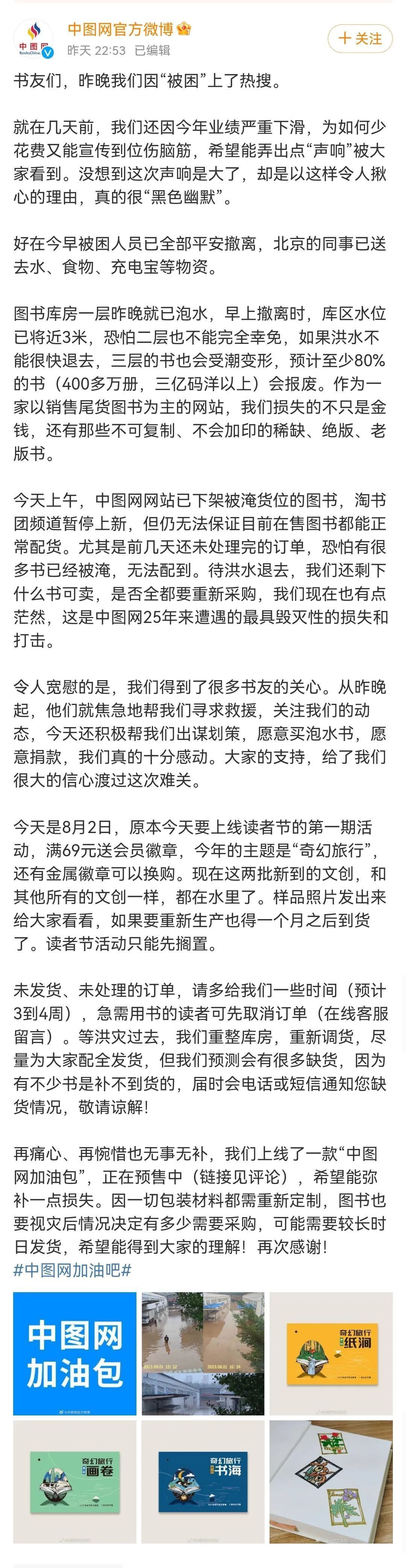 此前,#中图网库房被淹近百人被困#