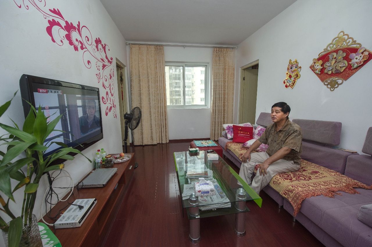 居民胡秋生一家原来住在武汉青山区十几平方米的棚户房里。随着青山区启动棚户区改造,胡秋生住进了青宜居小区74平方米的住房(2013年9月10日摄)。