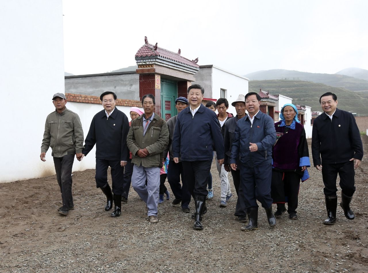 2016年8月23日,习近平总书记在海东市互助土族自治县五十镇班彦新村建设工地考察易地扶贫搬迁情况。