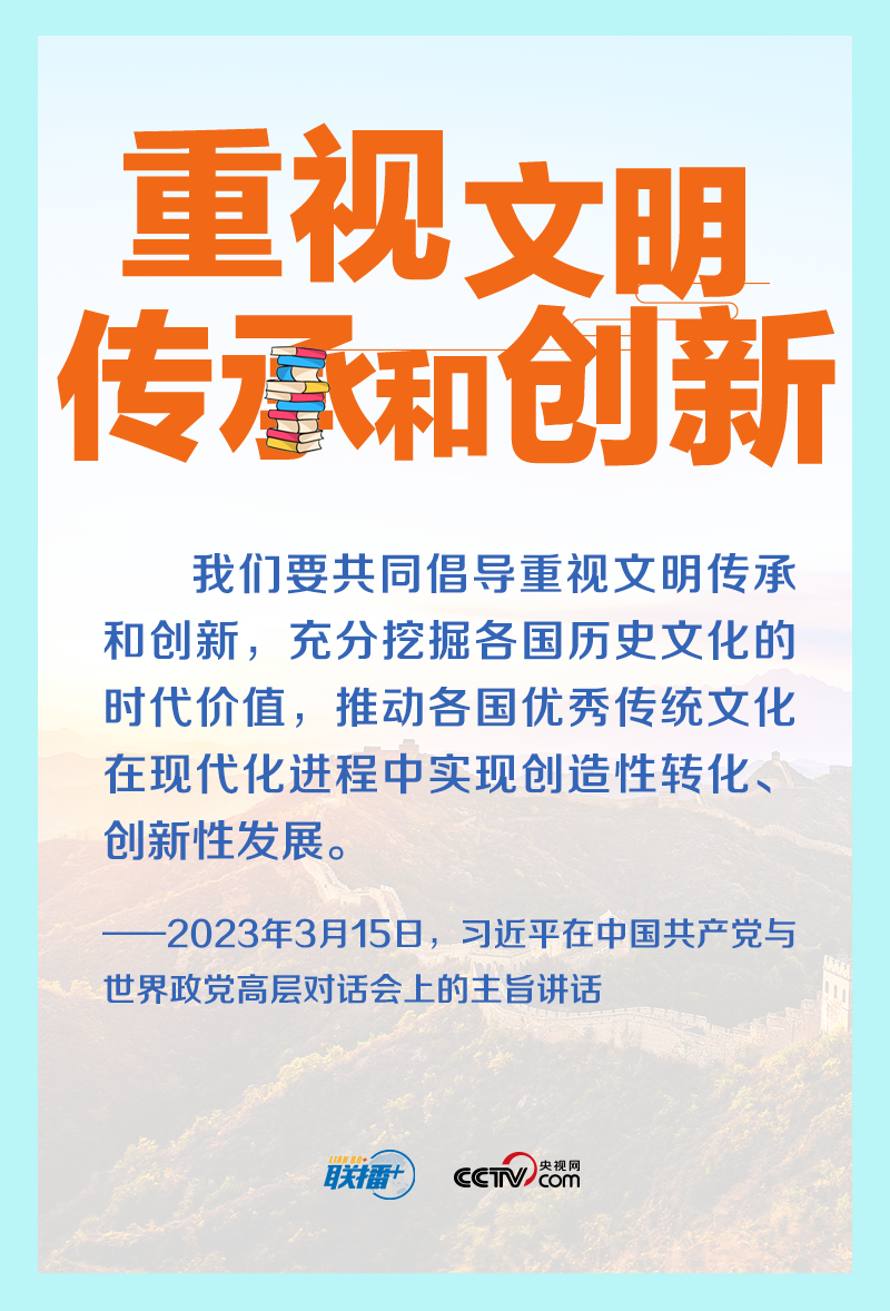 联播+重视文明传承和创新,是文明交流互鉴的动力源泉。2023年年初,习近平总书记在中国共产党与世界政党高层对话会上首次提出全球文明倡议,这是继全球发展倡议、全球安全倡议后,新时代中国为国际社会提供的新的国际公共产品。