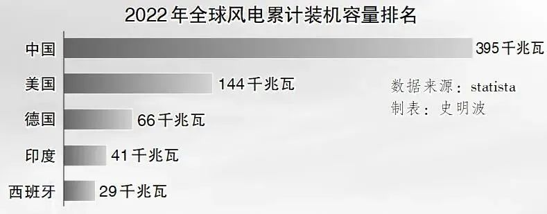截至2022年,中国风电市场累计装机容量395千兆瓦。当年,全球风电累计装机容量达到906千兆瓦,这是过去几十年来的一次大幅增长。