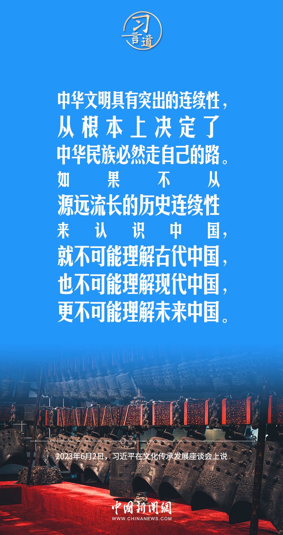 习言道|把世界上唯一没有中断的文明继续传承下去 2023-08-14 17:15 0 中华文明历史悠久,是世界上唯一没有中断、发展至今的文明。习近平总书记在多个场合提到中华文明的连续性,强调要从源远流长的历史连续性来认识中国。 责任编辑:李冬明