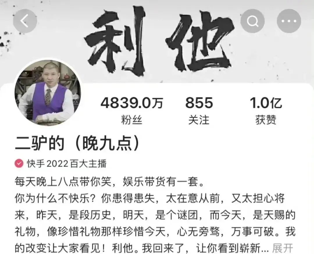 近日,某网络主播在市北区直播时,为赚取流量、吸引粉丝,编造剧本进行摆拍直播,引发网民关注。公安机关迅速开展调查,根据调查情况,对相关当事人依法予以处罚,其账号已被平台无限期封禁。通报中所指的涉事网络主播 ,即是拥有四千万粉丝的网络主播“二驴”。目前其账号在直播平台已无法显示。