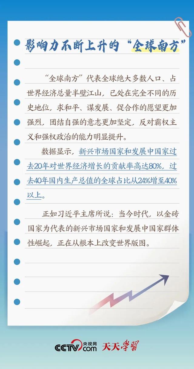 此次出访,习近平主席在向约翰内斯堡金砖国家工商论坛闭幕式发表致辞、同南非总统拉马福萨共同会见记者等场合均提及“全球南方”。什么是“全球南方”?“全球南方”国家有何共性?中国为何是“全球南方”的天然成员?跟着央视网《天天学习》一起了解。