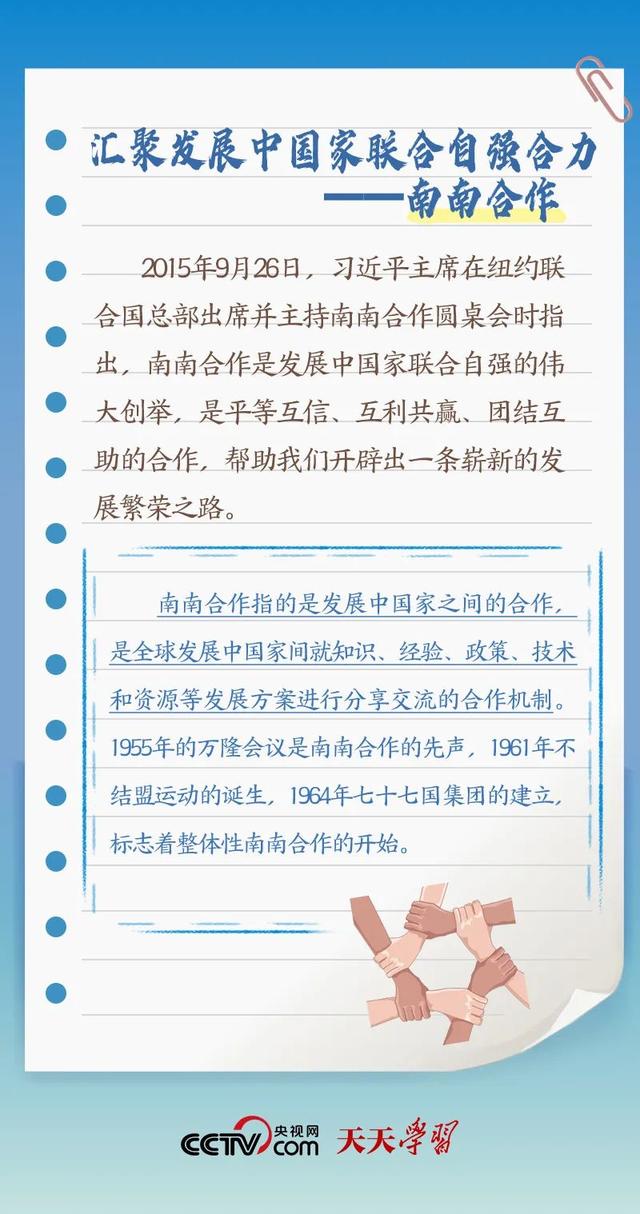 “作为发展中国家、‘全球南方’的一员,中国始终同其他发展中国家同呼吸、共命运”;“中南作为‘全球南方’天然成员,更要团结一致,共同呼吁扩大发展中国家在国际事务中的话语权和影响力”;“提升‘全球南方’国家在全球治理中的代表性和发言权”。