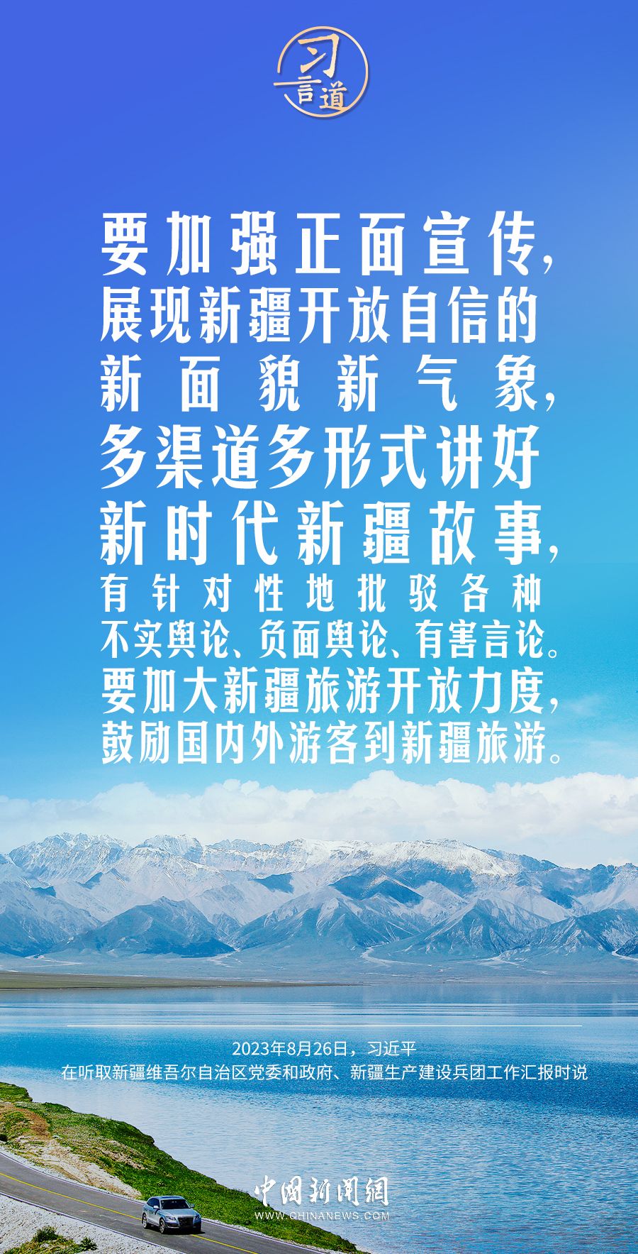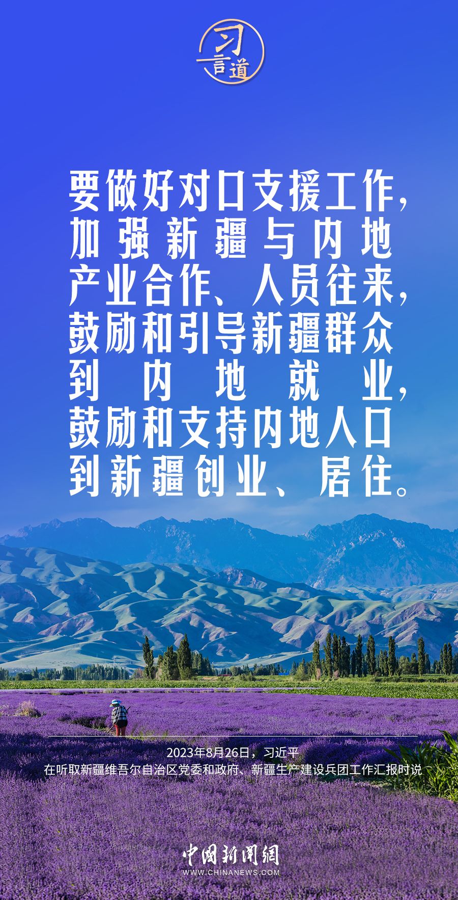 习言道|新疆面临新机遇,要有新作为 2023-08-28 18:15 0 8月26日,习近平在乌鲁木齐专门听取新疆维吾尔自治区党委和政府、新疆生产建设兵团工作汇报。习近平强调—— 来源:中国新闻网 责任编辑:林红