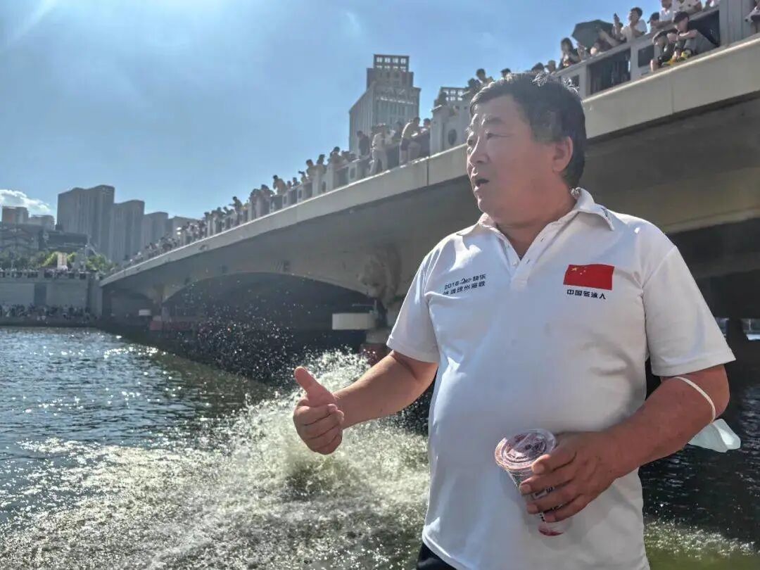 伴随着他激情澎湃的“有朋自远方来,不亦乐乎”,以及“数风流人物,还看今朝”的话语,一个大鹏展翅跳进海河里,引起岸边观众阵阵惊叹声。