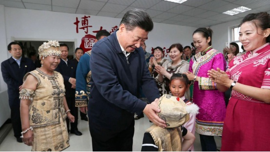 2016年5月24日,习近平总书记来到位于黑龙江佳木斯的同江市八岔赫哲族乡八岔村,在村活动中心饶有兴趣地参观了赫哲族民俗展。