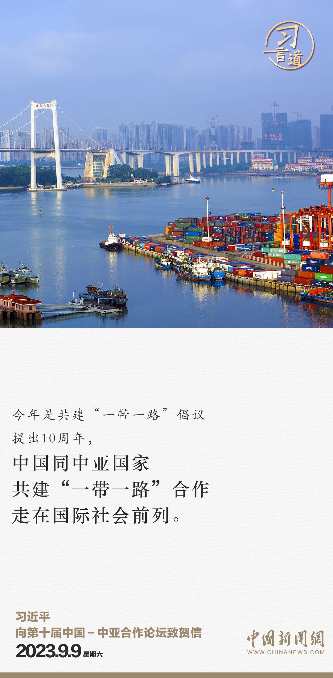 9月9日,国家主席习近平向第十届中国-中亚合作论坛致贺信。习近平指出——