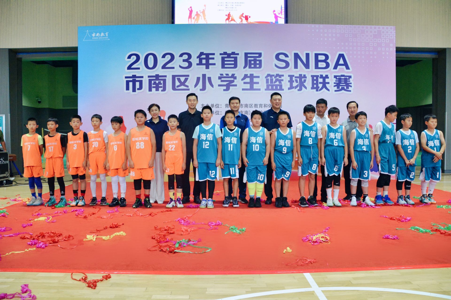 9月16日,首届市南区小学生篮球联赛(SNBA)在青岛海信学校拉开序幕!青岛市体育局竞技体育处处长徐泽,青岛市篮球橄榄球运动管理中心主任张晓,青岛市教育局体卫艺处副处长曹家祥,市南区教育研究中心副主任辛源等出席开幕式。