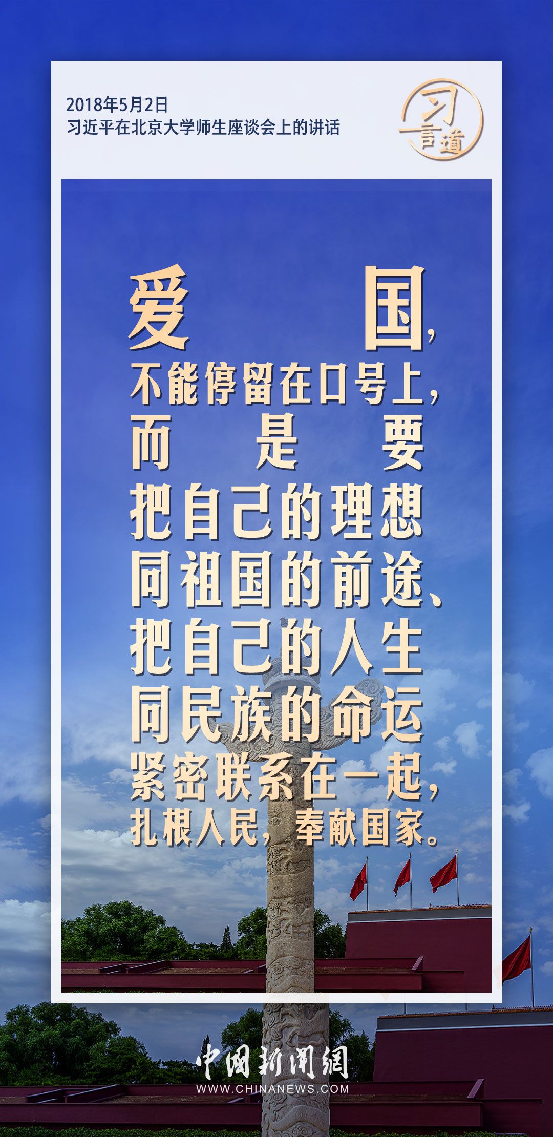 习言道|爱国,是人世间最深层、最持久的情感 2023-10-01 16:00 0 今天是国庆节。在国庆74周年之际,让我们一起重温习近平总书记关于爱国主义的重要论述—— 来源:中国新闻网 责任编辑:王海山