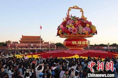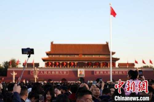 1日清晨,30.2万名民众齐聚天安门广场观看升旗仪式,庆祝中华人民共和国成立74周年。