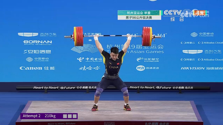 田涛夺得杭州亚运会举重男子96公斤级金牌