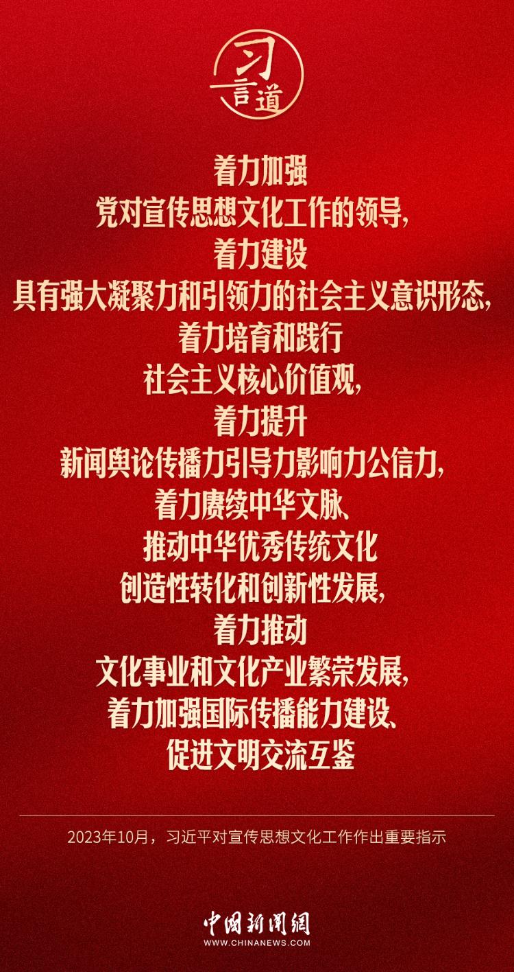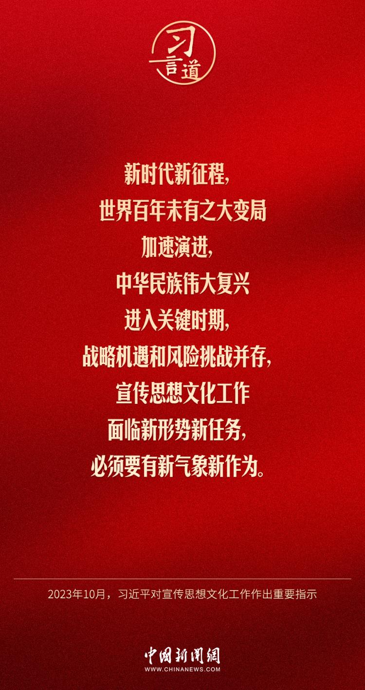 习言道|宣传思想文化工作,是一项极端重要的工作 2023-10-09 19:12 0 中共中央总书记、国家主席、中央军委主席习近平近日对宣传思想文化工作作出重要指示,他指出—— 来源:中国新闻网 责任编辑:李颉
