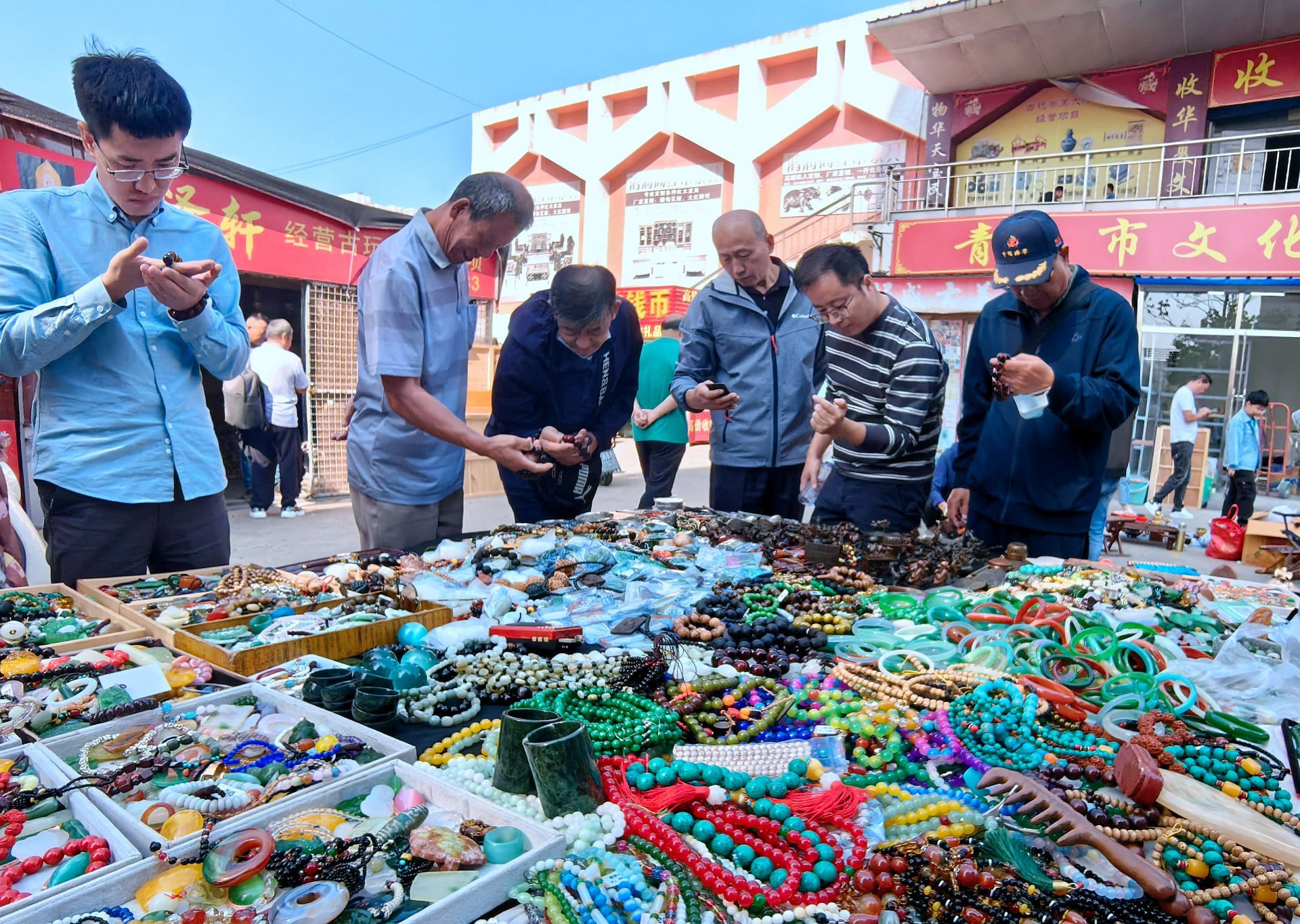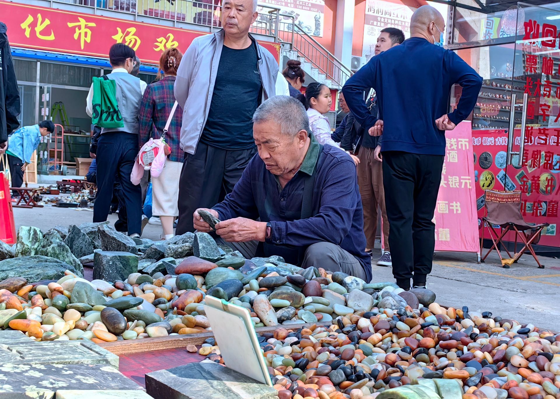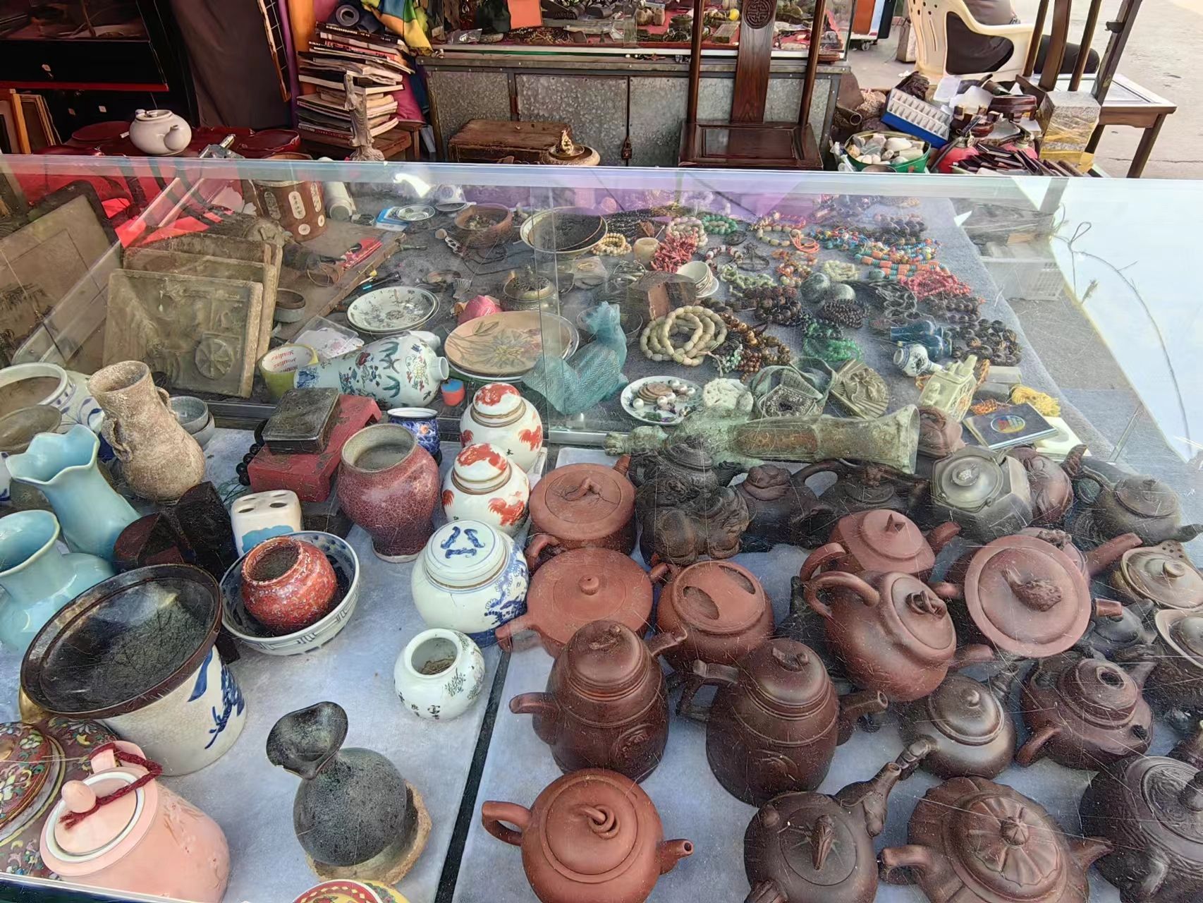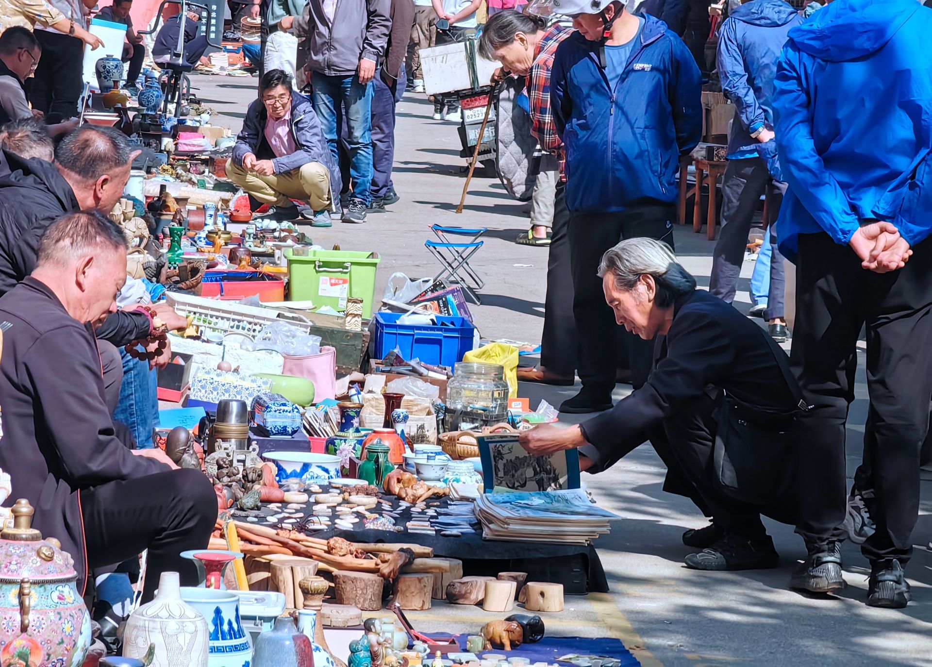 在这两个半天里,从利津路、辽宁路交界开始,一直到华阳路,再到文化市场里面,两侧的摊位上摆满了邮币卡、古玩字画、古旧书籍、文玩摆件、手珠手链、真假难辨的古董、老式物件等等,琳琅满目,令人目不暇接。