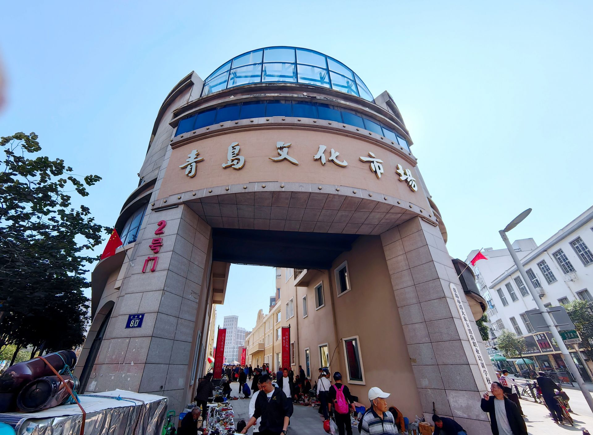 原天幕城2号门华丽转身为“青岛文化市场”。