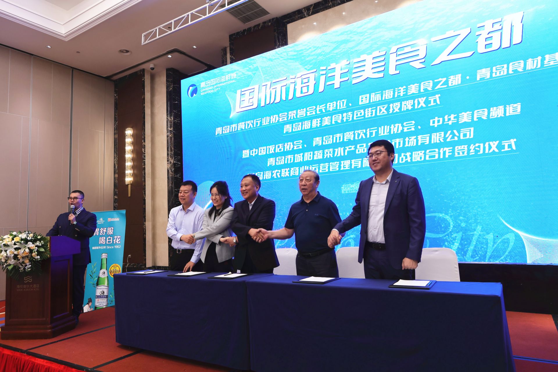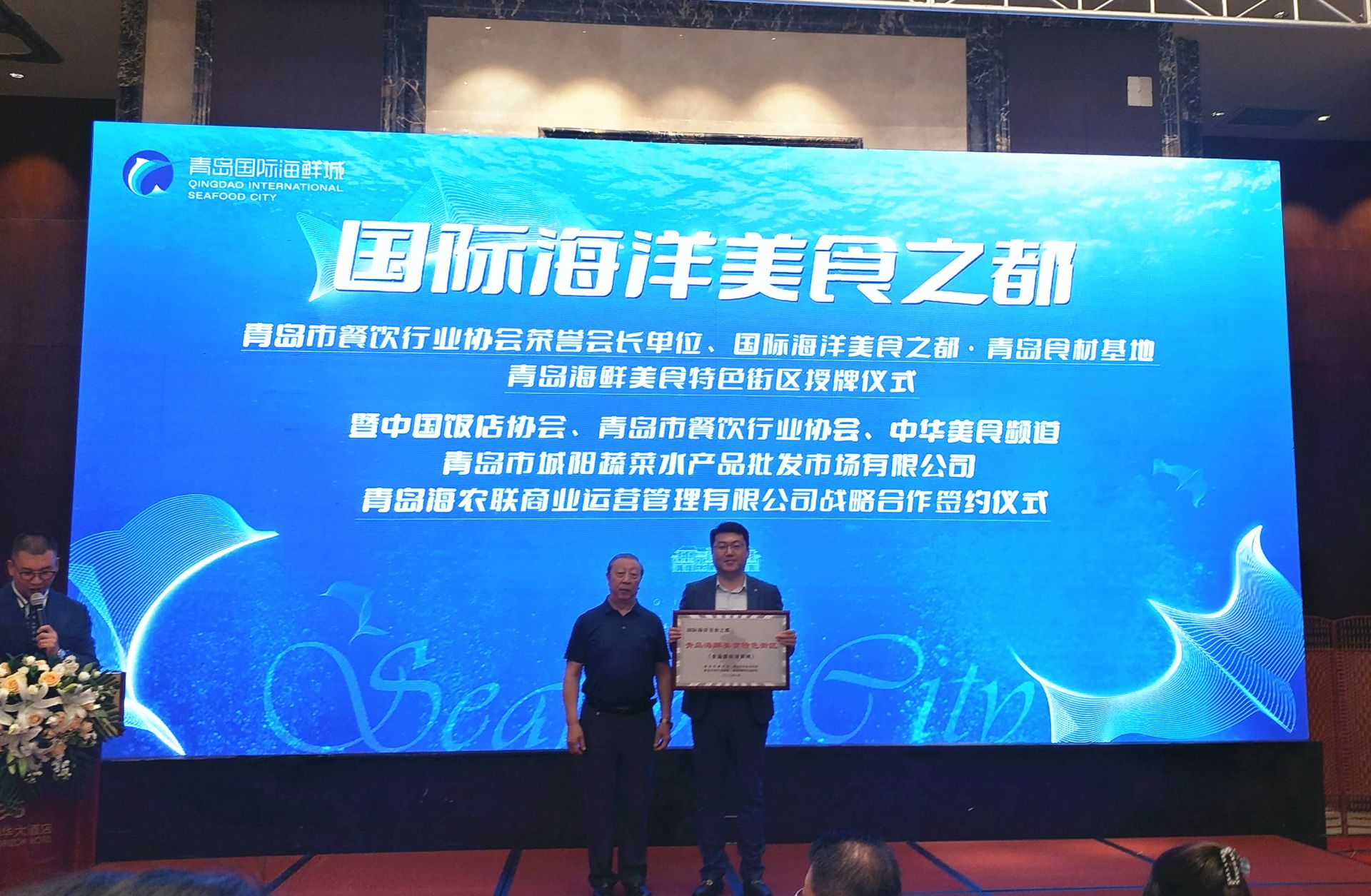 青岛市商务局、青岛市工商联、青岛市民营经济发展局、青岛市广电中视有限公司、中国饭店协会、青岛市餐饮业协会、青岛市城阳蔬菜水产品批发市场等相关部门领导出席了此次签约授牌仪式。