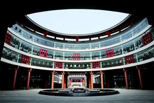 市实验高中教学综合体,设计灵感来自中国古代城市棋盘式布局。