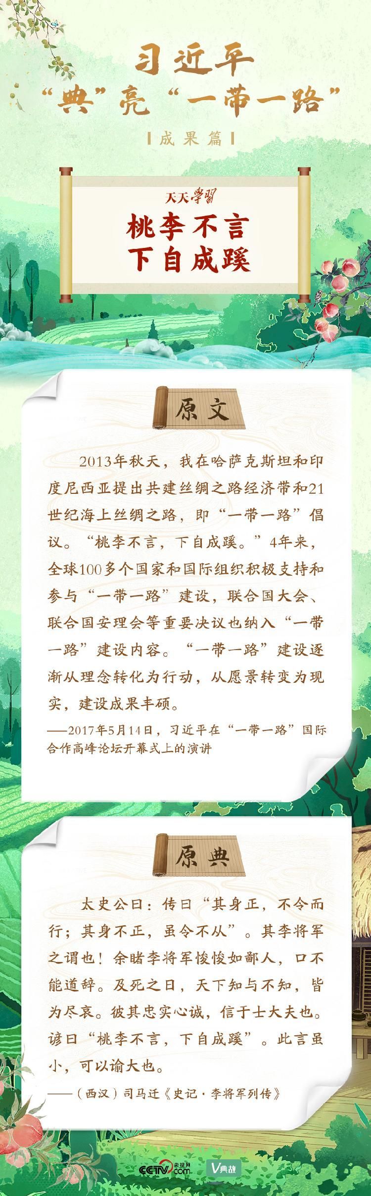 在国内国际多个重要场合,习近平主席频频引经据典,介绍“一带一路”承载的厚重历史,阐述“一带一路”建设的理念和重大意义,描绘“一带一路”美好的发展愿景。央视网《天天学习》栏目特选取习近平主席的部分用典,与您一起学习领会。