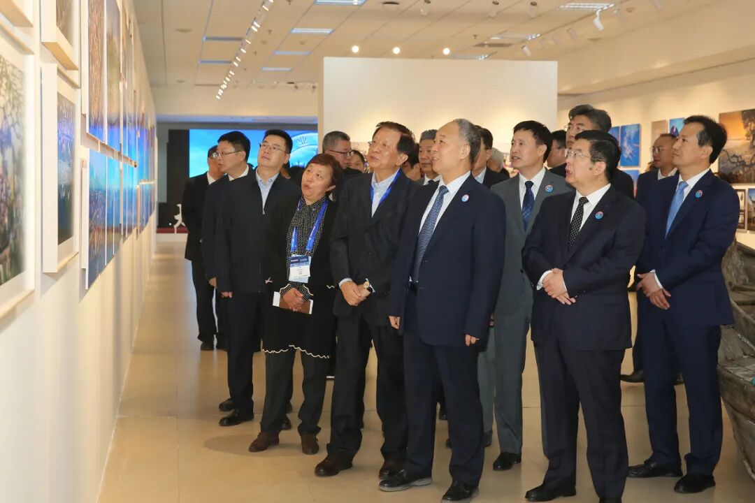 农业农村部副部长马有祥,山东省人民政府副省长陈平等嘉宾参观“大美渔村 平安渔业” 中国渔业摄影精品回顾展。
