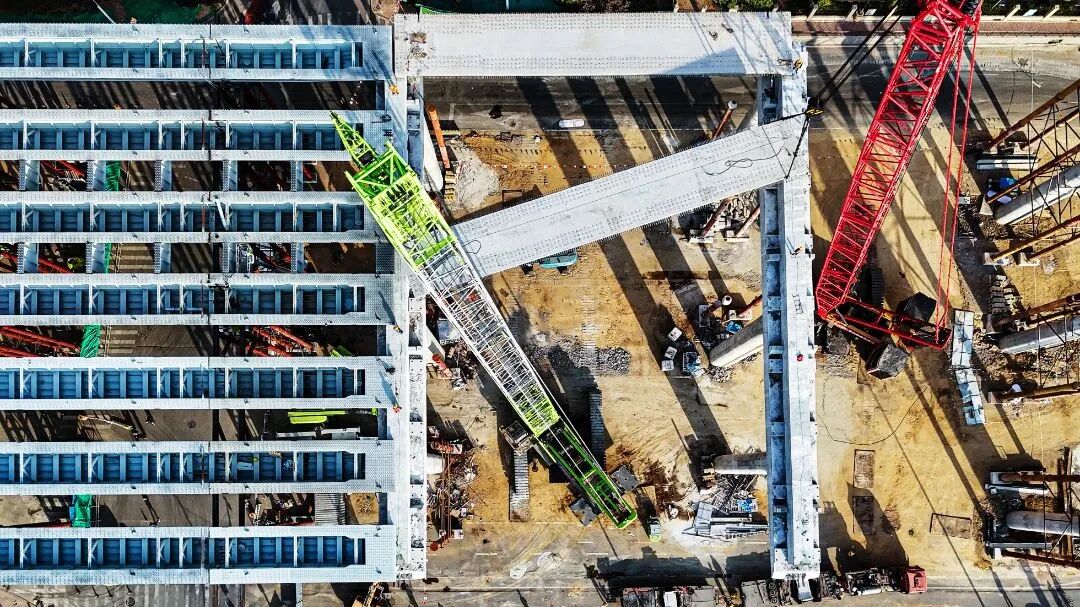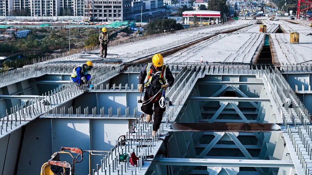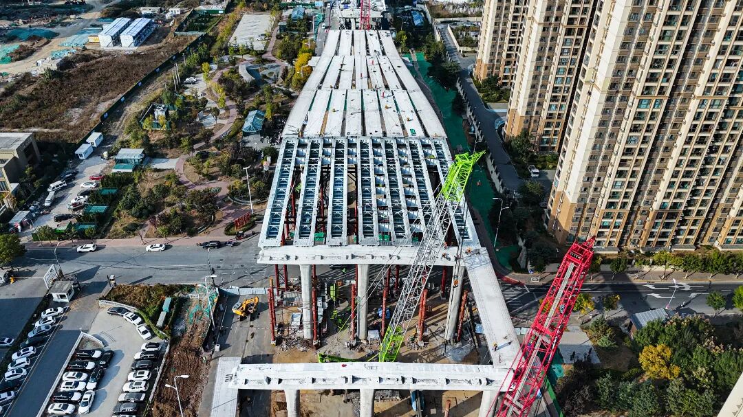 截至目前,桥梁下部结构已全部结束,钢箱梁架设已完成;预制小箱梁架设共计140榀。接下来,施工现场重点加快已架设完成的钢箱梁焊接、桥面系施工等工作进度,确保11月中旬前具备桥面沥青铺装条件。