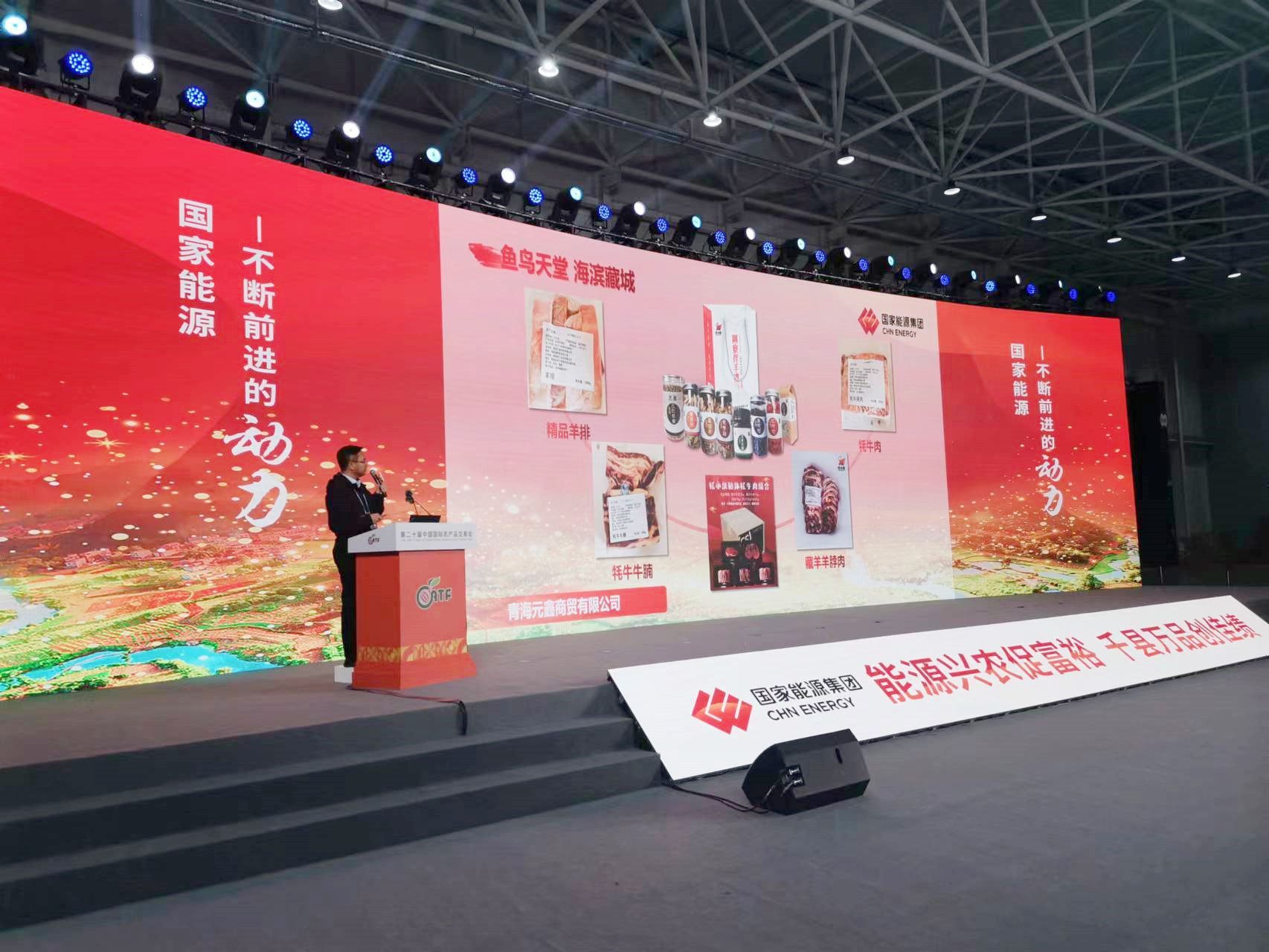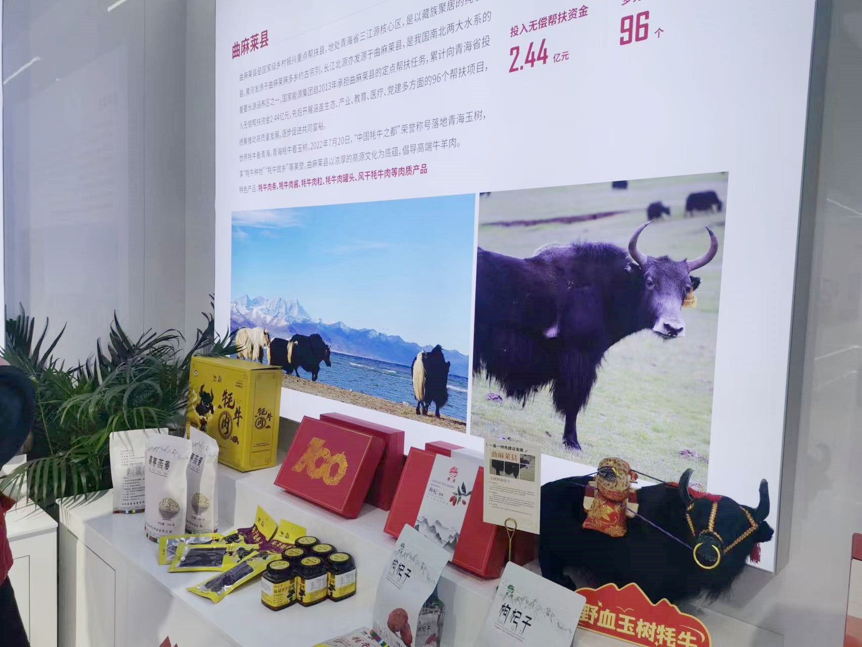 推介会上,青海曲麻莱县的玉树牦牛、扎什加羊、牦牛肉、牦牛肉酱等产品则让人食指大动。
