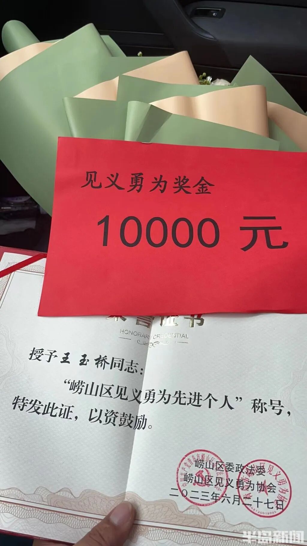 “崂山区见义勇为先进个人”