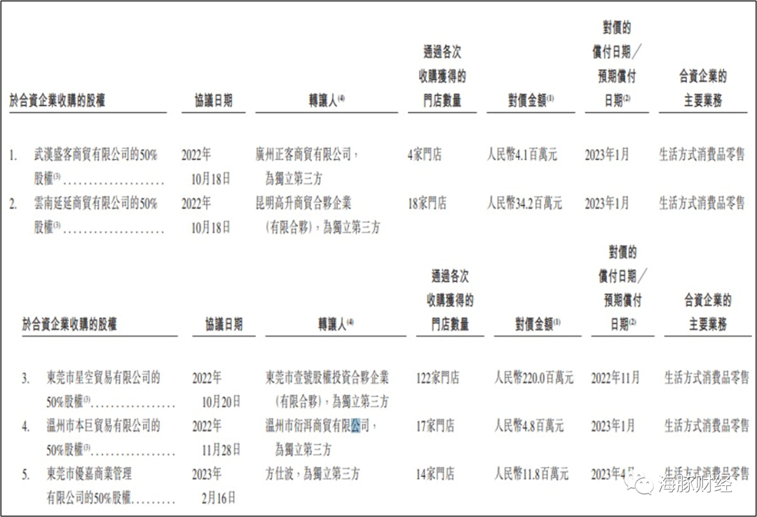 KK集团自有门店占比大幅提升与加盟商密集出走有关。在最新招股书中,KK集团披露了其向加盟商收购部分合资公司股权,将加盟店变成全资门店的过程。