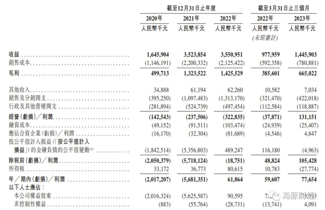 招数股书显示,KK集团收入主要来源包括门店零售以及管理和咨询服务收入。2019年、2020年、2021年以及2022年,KK集团的收入分别为4.64亿元、16.46亿元、35.24亿元、35.51亿元,净利润分别为-5.15亿元、-20.17亿元、-56.81亿元、0.62亿元,不到四年的时间累计亏损高达81亿元。2023年一季度,KK集团实现营收14.46亿元,净利润0.78亿元。