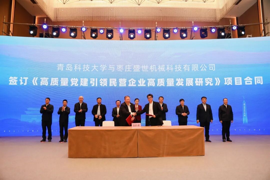 会上,青岛科技大学还分别与山东精工电子科技有限公司签订山东省重大科技攻关项目——《高性能储能磷酸铁锂电池开发及产业化》项目合同;与枣庄盛世机械科技有限公司签订《高质量党建引领民营企业高质量发展研究》项目合同;与枣庄银行签订《未来金融家MBA班》项目合同。