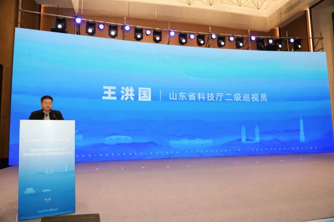 翟军在致辞中表示,青岛科技大学与枣庄市主导产业高度契合,同枣庄校地合作基础扎实、由来已久、不断深化。一直以来,青岛科技大学与枣庄多家企业保持密切合作;今年年初,又同枣庄市签订了校地融合发展战略合作框架协议,成立了融合创新发展中心,取得了阶段性合作成果。本次签订累计1.1亿元的科研成果转化项目,标志着双方合作随之迈向更高水平、取得重大突破、迎来光明前景,也必将为枣庄发展提供强大技术和人才支撑,为推动“强工兴产、转型突围”注入强劲动能。