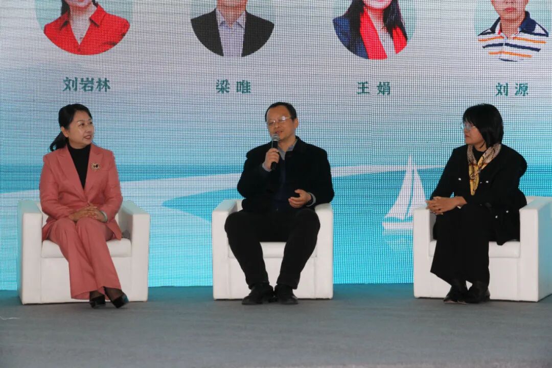 ▲青岛出版社儿童文学中心总编辑梁唯(中)