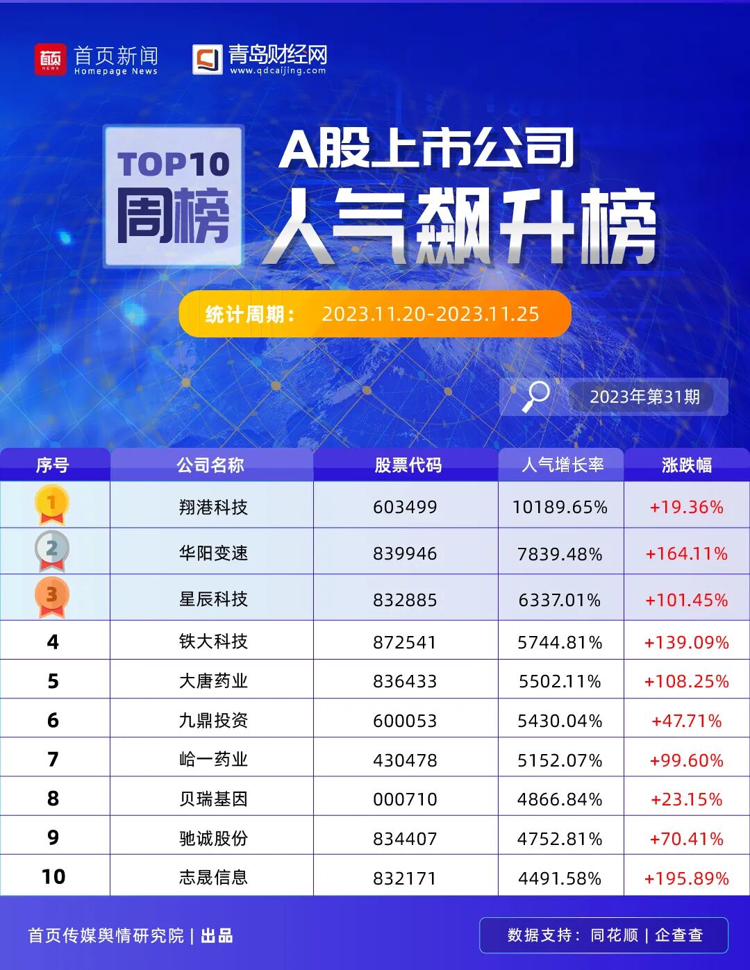 A股上市公司一周人气飙升榜|翔港科技高居榜首