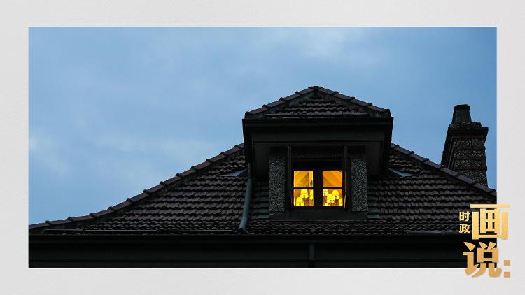 △夜幕初降,思南路上一栋阁楼亮起温暖灯光。上海之夜,万家灯火。