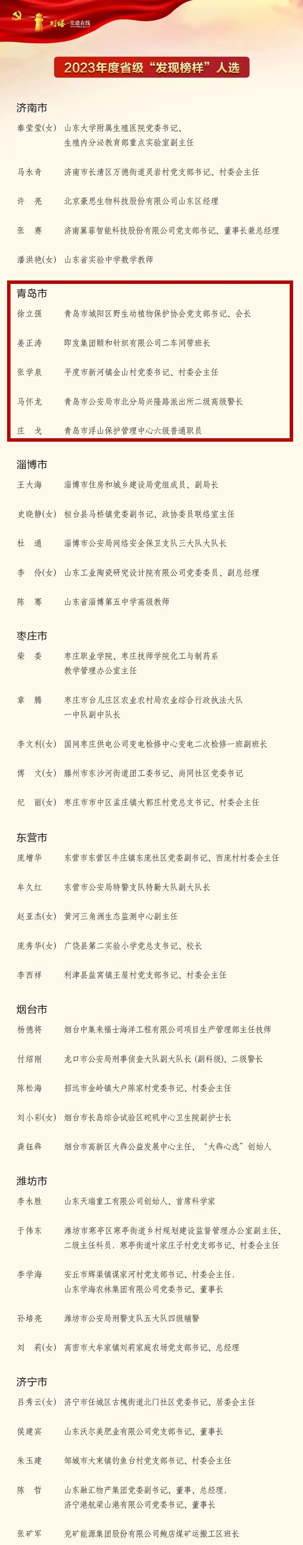 名单中,青岛市徐立强、姜正涛、张学泉、马怀龙、庄戈榜上有名。