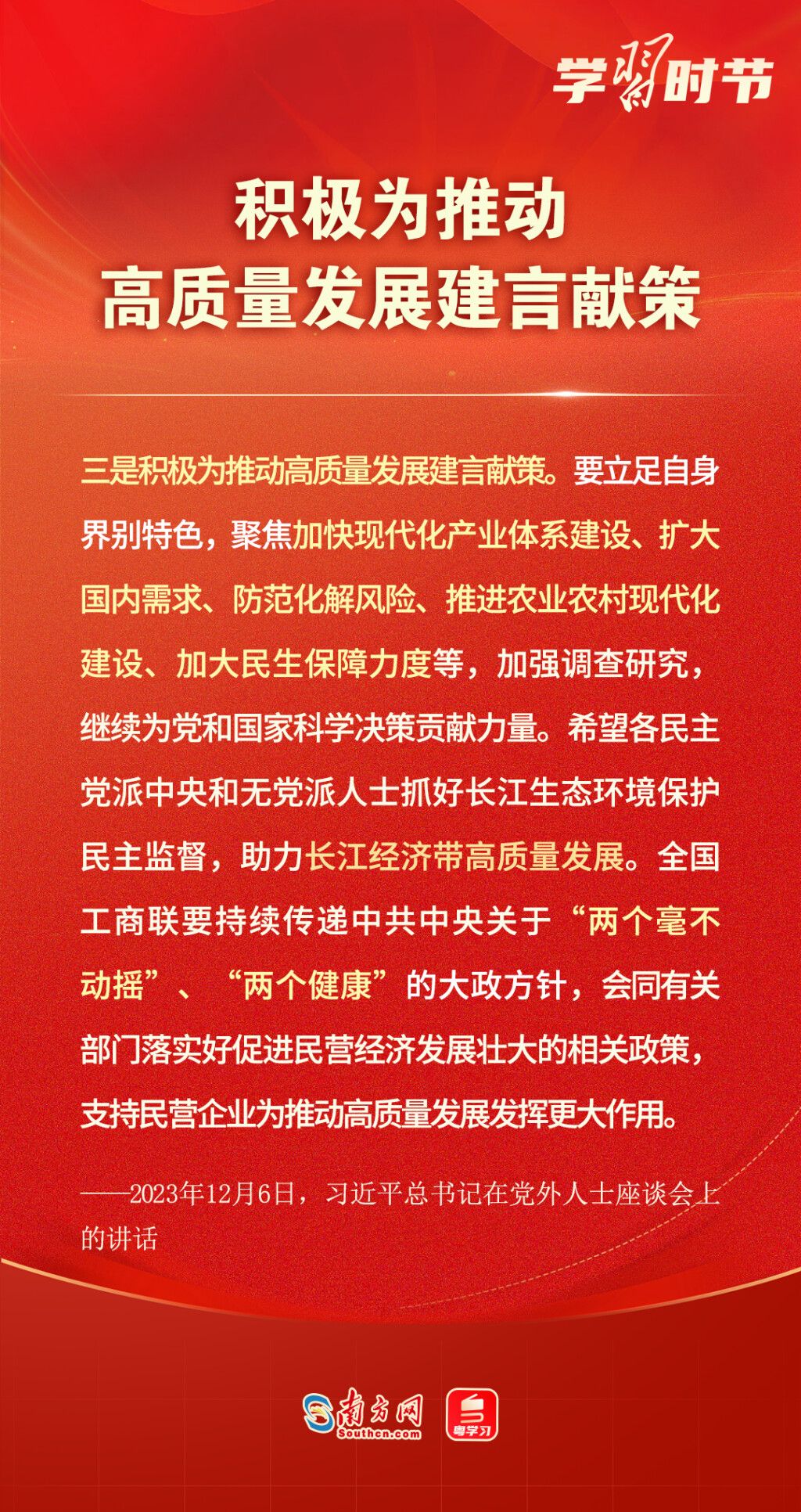 12月6日,中共中央在中南海召开党外人士座谈会,就今年经济形势和明年经济工作听取各民主党派中央、全国工商联负责人和无党派人士代表的意见和建议。中共中央总书记习近平主持座谈会并发表重要讲话,他对各民主党派、全国工商联和无党派人士提出3点希望——